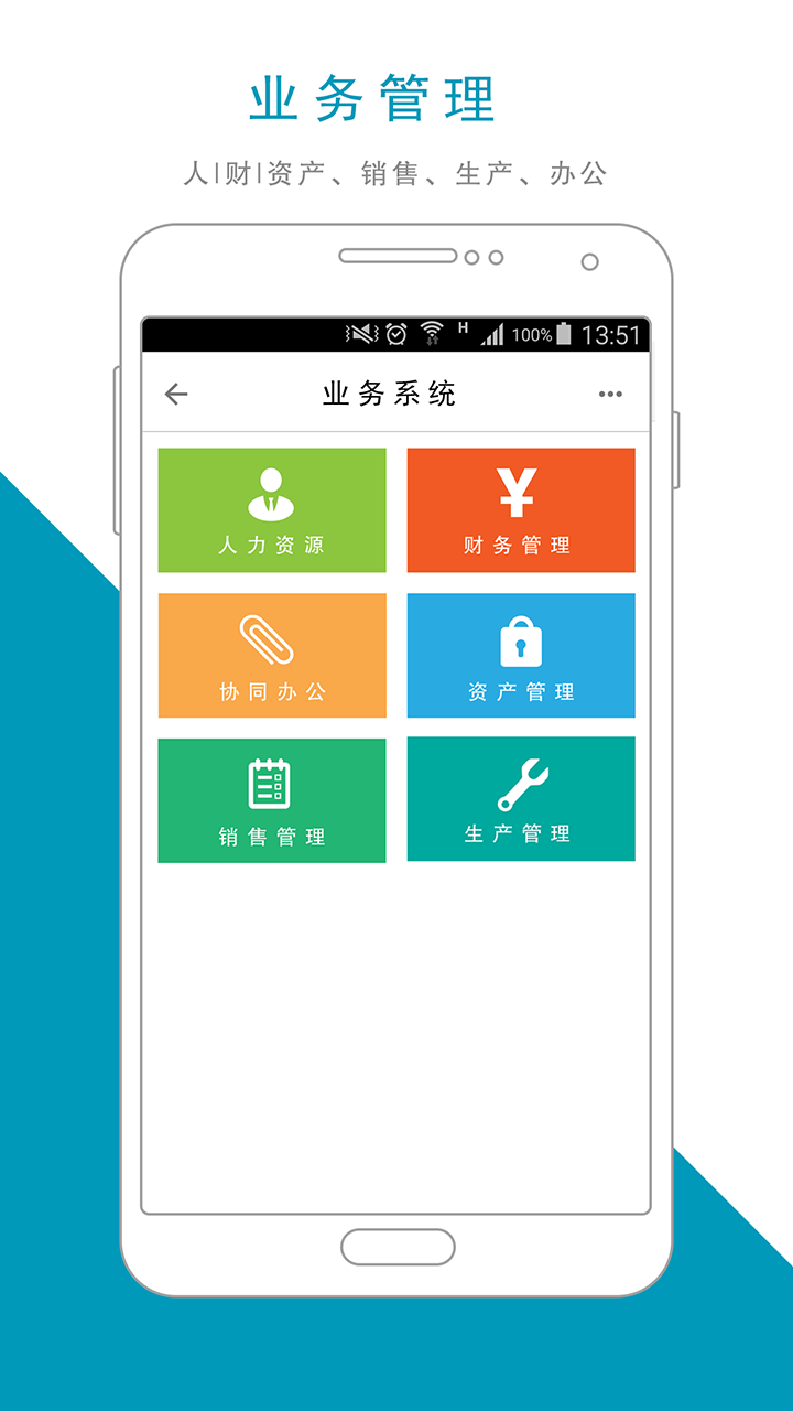 4、业务管理:围绕项目型组织的运作以及业务管理,提供人力资源、财务网报、资产管理、销售管理、协同办公、生产管理等业务系统。企业(组织)以及业务资讯及时查阅,事务即随时审批,让办公以及业务管理无界。
