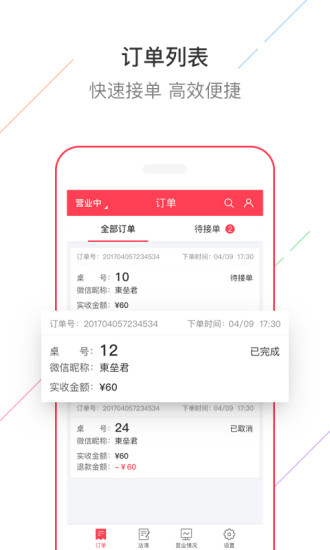 身为一个老板,在经营自家的餐厅时,每日的营业额肯定是需要记清楚的。特别是有合伙的情况下更需要这么做,那么你还在用传统的纸质记录吗?《范当家》是一款专为餐厅老板打造的办公软件。通过这款软件老板可以随时查看餐厅的营业情况,还可以随时自动或者手动接单,多的更多的客源,让老板放心做“甩手掌柜”。快来下载体验一下吧。