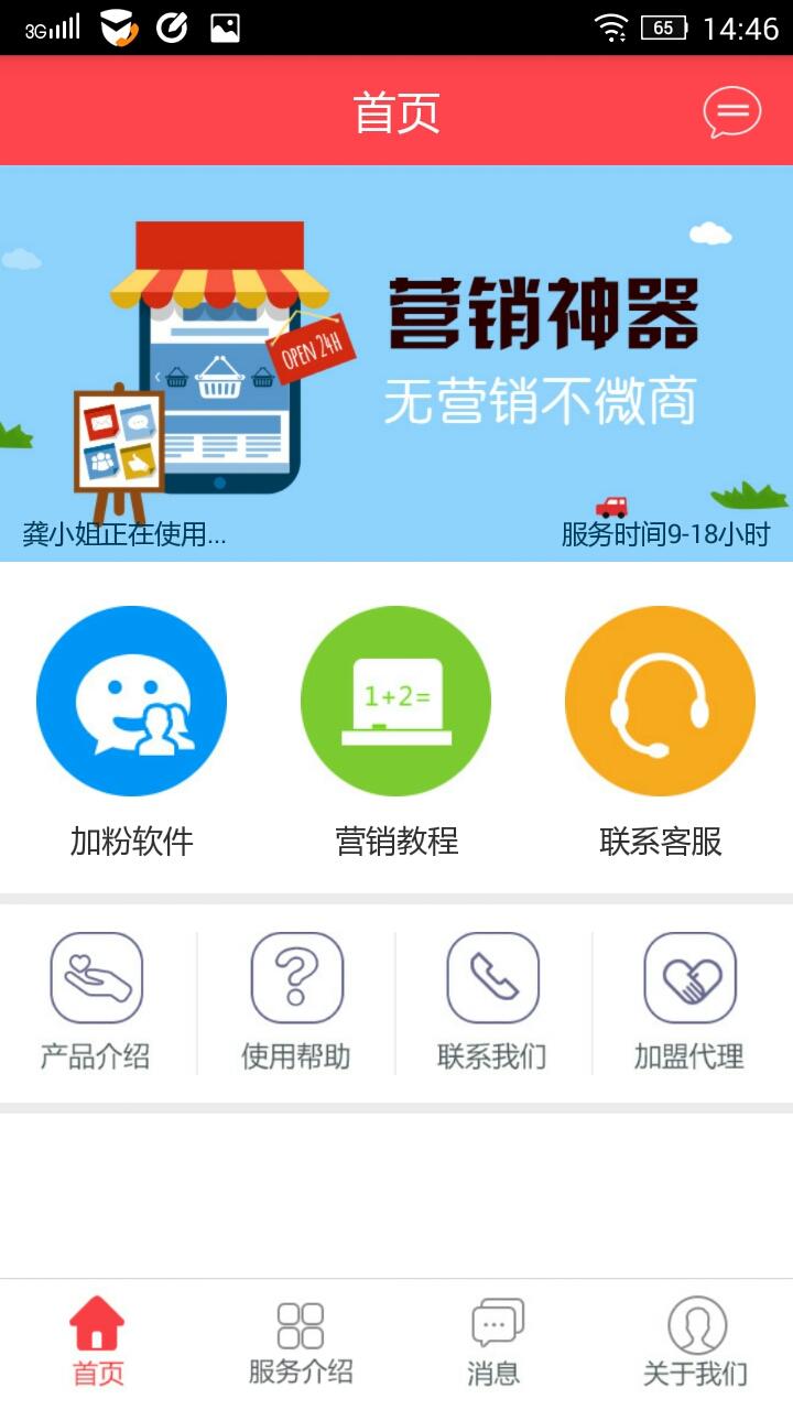 推广营销类的工作是非常需要经验的,如果你想要拥有一款可以推广产品的软件,就来下载这款微喵营销app,这是一款专为推广营销工作人员答案早的营销软件。通过这款软件,你可以轻松地把你的产品进行推广,只需要打开软件,直接可以免费加粉,还有最专业的营销课程免费让你看。
