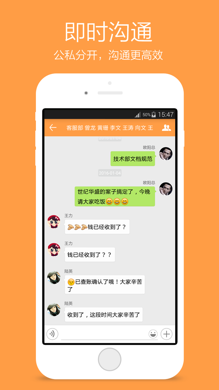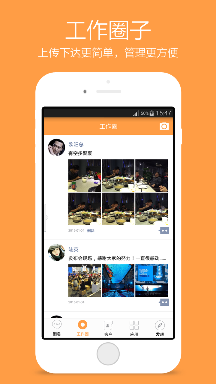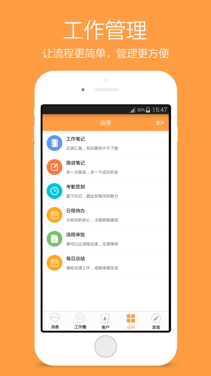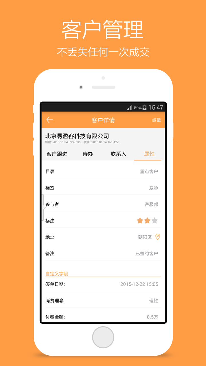 1、随时随地管理客户信息,通过文字、图片、音视频、文档等完整记录业务过程;