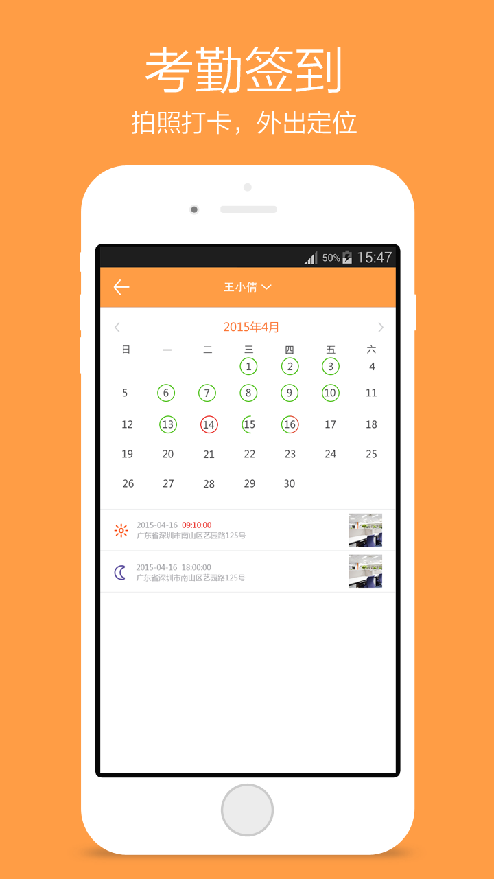 7、数据统计,包括外出签到考勤统计、客户新增及跟进统计、签单回款统计及排行等。
