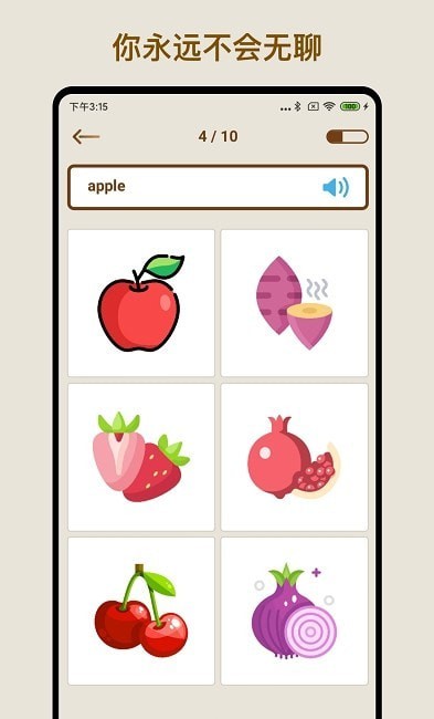 2、App以有趣和令人上瘾的游戏,迅速扩大你的英语词汇。