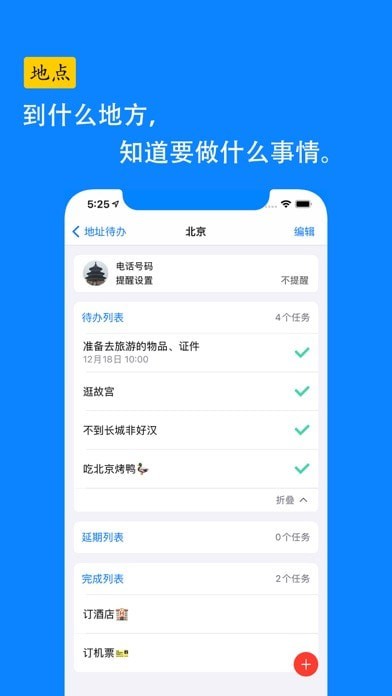 地点待办:显示具有地点的任务列表,还可以通过地图形式显示。