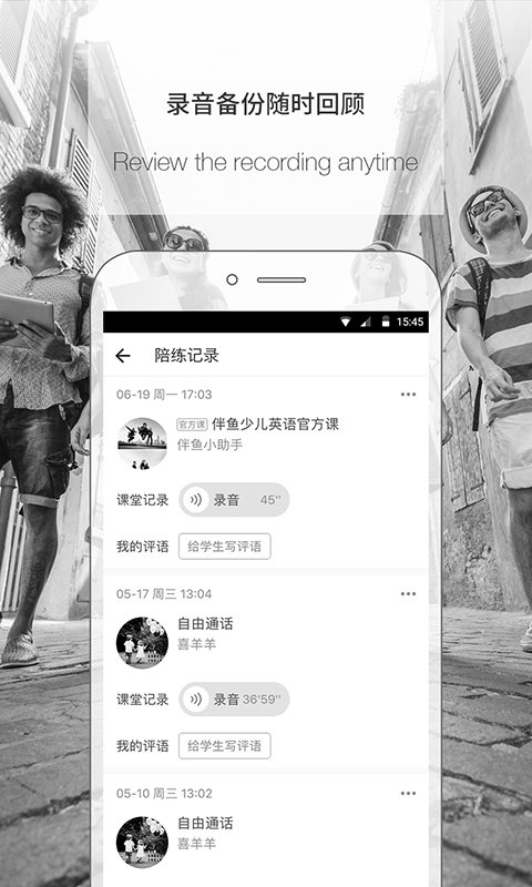 录音:自动录音陪练纪录,随时回顾效果。