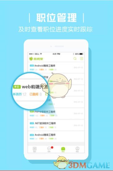 青聘果企业版是一款供企业HR使用的手机招聘软件,HR可以在这里发布自己的职位信息,可以查看和筛选简历,轻松找到适合公司的好人才。青聘果系统主要包括学生管理、用人单位管理、就业指导中心管理三大子功能模块。