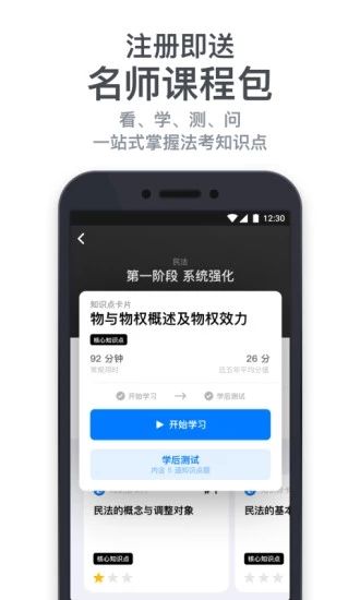 深蓝法考APP是为法考考生打造的一款法律职业资格考试一站式服务平台,包括免费课程、免费真题题库、免费法条查询和免费老师答疑。