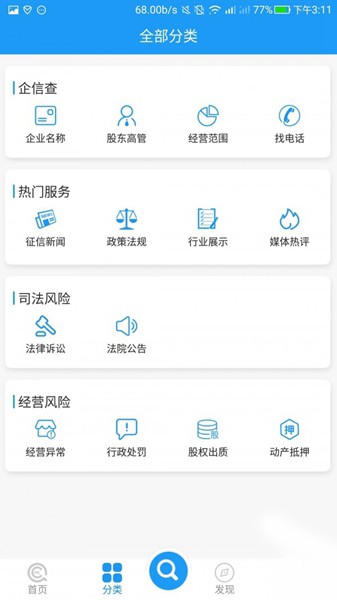 “企信查”APP是太平洋征.信有限公司自主开发的信用调查应用软件,从政府监管信息、法律经营风险,股权产权等各大维度50多个层面深度挖掘、分析、解读企业背景关系和信用状况,进行风险预警,并形成专业客观的信用报告。