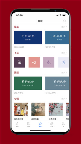 【兴趣话题】李白、苏轼及爱情、秋日等都是话题。各抒胸臆感受思想碰撞的火花,素未谋面却能倾盖如故。