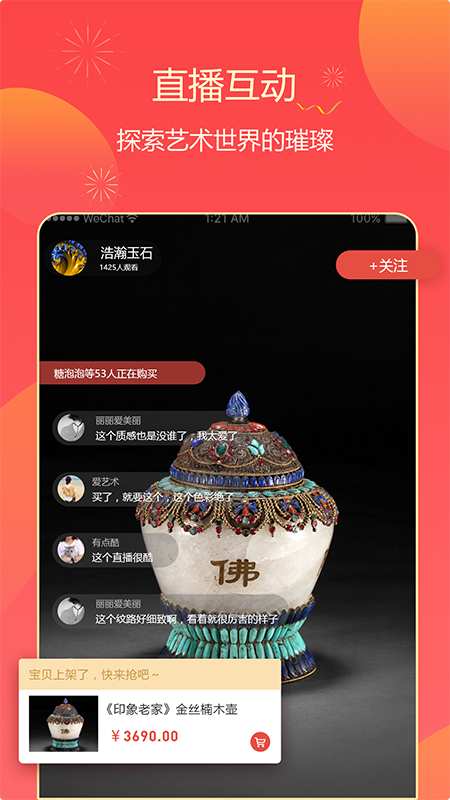 公司作为一家专门从事文物艺术品鉴定、交易以及行业服务的互联网公司,致力于规范古玩交易,探索古玩价值,帮助用户发现手中藏品的真实价值,使用户享受古玩收益乐趣。