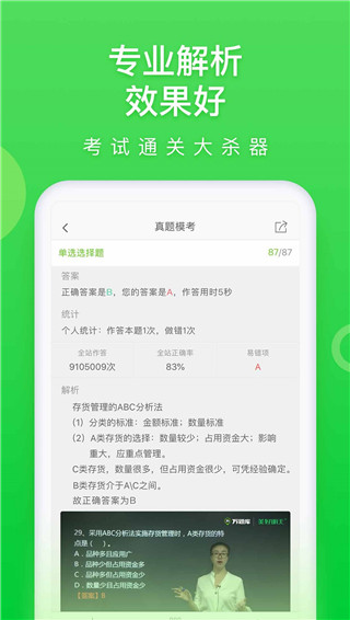 1、加快试题速度,大大提高考试成绩:智能试题库,名师视频分析。