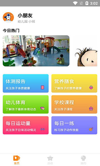 不定时关注园内幼儿体质专项提升课程,轻松了解孩子课程情况。