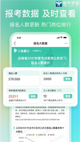 2、提供热门考试报名人数,进面分数线在线查询,避开竞争激烈岗位,成“公”几率更高。