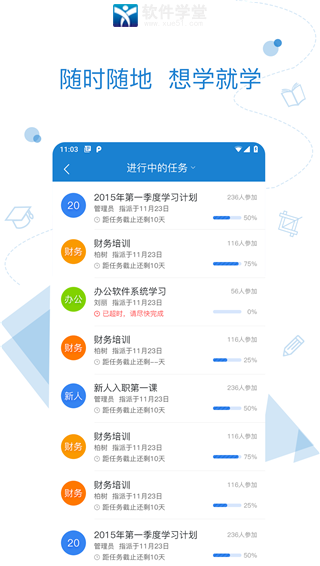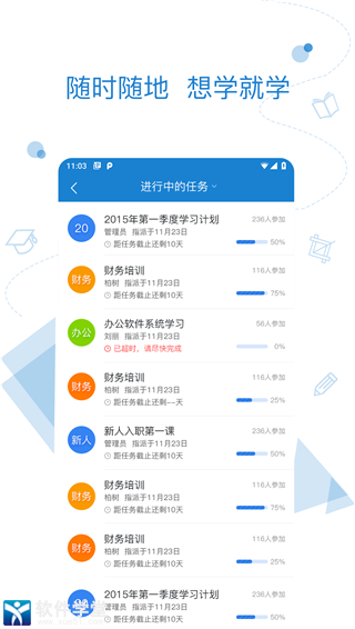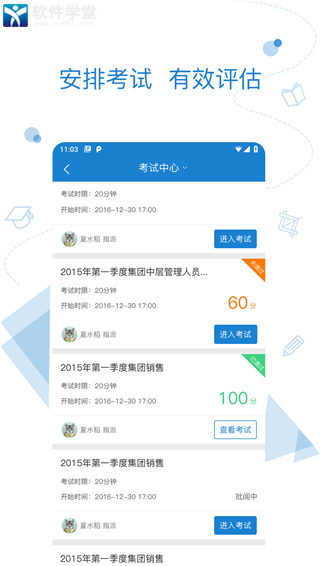 软件会为大家迅速分配学习任务,并实时跟踪大家的学习进度,让大家在线上学习的过程中有目标,不再找不到方向,大家还可以参加线上考试,软件自动为大家记录每次考试的结果,软件可以公司其他员工进行交流,一起学习效果更好,让大家线上学习充分激情。