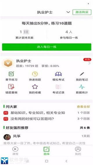 4、进入考试题库界面,可以进行考试章节练习和笔记记录。
