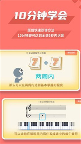 该软件是一款非常实用的手机学习软件,不同于传统的音乐教学方式,通过边玩边学的方式帮助大家快速掌握乐谱和各种演奏方法,随时随地在线学习。提供了超多原创课程,可以帮助用户速记五线谱,也提升自身识谱的速度,掌握最基本的五线谱音高识别方法,还可以让用户轻松识别音符、音高等信息;平台也推荐了趣味学习模式,可以让用户边玩边学,让识谱过程不再枯燥。