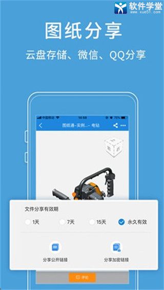 3、图纸通安全的分享图纸。可以将手机或电脑本地3D模型和CAD图纸一键分享给他人,提供【公开】和【加密】分享。