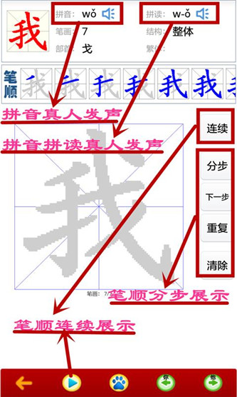 4.汉字笔顺展示,为学生提供了书写的顺序展示