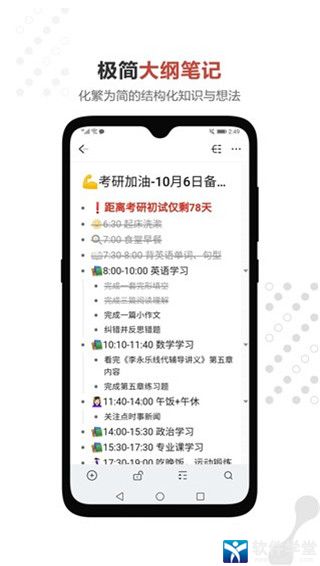 1、高效的结构化笔记:通过大纲来组织内容,无论是读书笔记、活动策划、会议记录还是待办清单,都能完美胜任,这种更具条理性的写作方式,会带给你全新的体验,极简可靠。