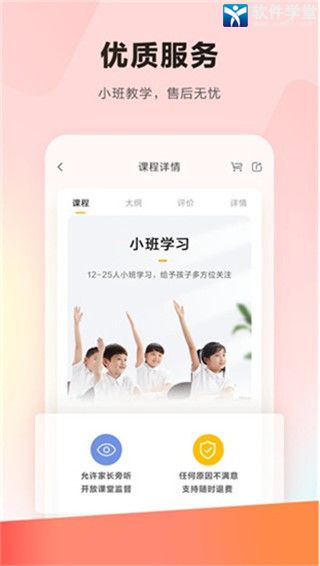 而且平台为中小学所有年龄段的学生提供培训,带给我们全面的学习帮助,轻松的学习,优质的学习氛围,帮助我们更好的学习,享受最快乐最高效的学习方式,强大的师资团队,享受最高效的教学服务,一款旨在为小中高各个年龄段的学生带来优质的学习体验。