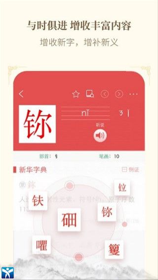 并且及时为你更新加入新的汉字,并且界面简单,使用便捷,同时支持离线查询。可以在线进行查询,可以查部首偏旁、查拼音、查词组、查解析、还能查看纸质的报刊内容。是一个全新改版,有音频功能的汉语字典。能让大家便捷的查字、查解析,让大家学好汉语,新版电子版使用更加的方便简单,汉子的注音和解释,让每一位用户都可以学习到更多的汉子文化,功能不断的在完善,用户体验不断的在提高。