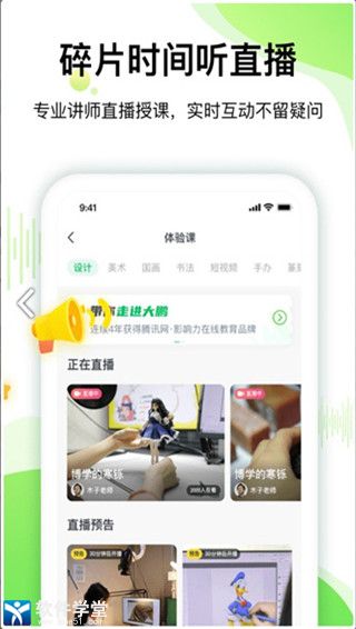 2、直播授课:面对面互动授课,随时随地在线学习。