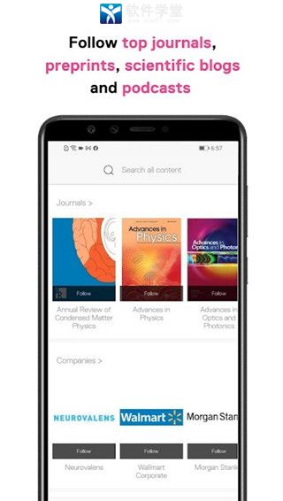 该软件是一款文献查找阅读软件,搜集多个知名期刊的最新论文,涵盖多个研究领域,帮助大家更快捷地收集阅读文献。通过允许您关注,过滤并阅读您感兴趣的所有期刊的论文,帮助您保持在学术研究的顶端。用户可在软件中浏览来自所有顶级出版商的化学,物理,生物,地质,计算机,社会科学,医学和工程等超过3,000种期刊的最新论文!