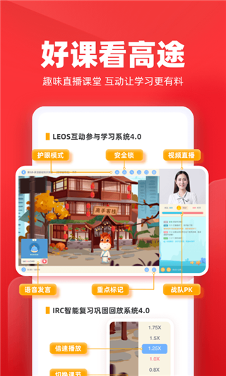 利用独家技术打造的虚拟课堂,营造出一种一种在线有趣的学习体验,让原本枯燥无味的课本知识通过线上教师的风趣讲解变得生动起来,而学生学习起来也是更轻松更快速,掌握的更牢固。该软件花费重金请出各个高校名校的名师来到高途进行直播上课。