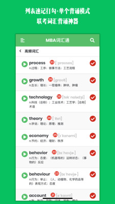 1、MBA词汇通汇集了初中三年的所有单词资源,以游戏和教学的方式相结合,效果显著;