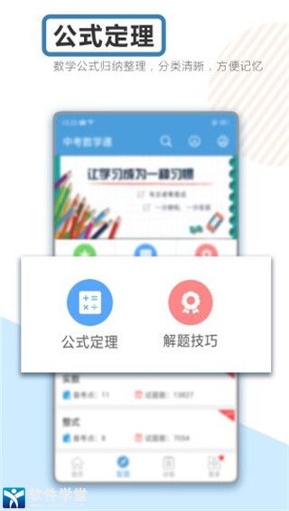 2、知识点:包含中考数学科目下的所有中考知识点详解,具体的有数与式、方程与不等式、函数与图像、三角形、多边形、圆等几个大的模块。