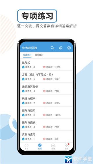 同时还设置里高频考点,易错点供用户练习,提高考试题型的熟练度和准确度,更能轻松的面对考试,首页设计了中考倒计时,时刻提醒用户时间紧迫,更能快速学习。本次小编为大家带来了中考数学通破解版,里面涵盖了所有中考考点,历年真题题库免费练习。