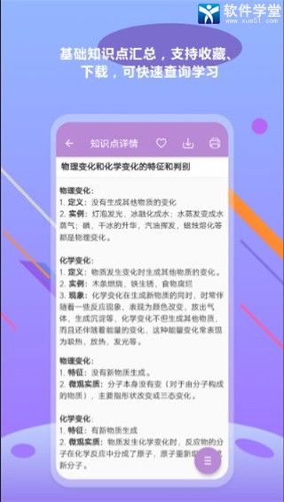 2、知识点:包含中考化学科目下的所有中考知识点详解,具体的有基础知识、化学反应、化学计算、化学物质、化学实验、化学与社会发展等几个大的模块 。