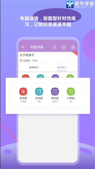 1、细化涵盖中考化学科目的专题练习题目,每一道题目都有详细的讲解分析。