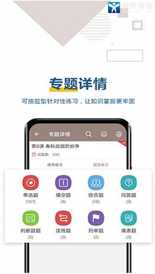 5、专题:细化涵盖中考历史科目的专题练习题目,每一道题目都有详细的讲解分析 。