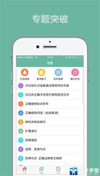 5、专题板块,写作指导,学习方法技巧,各种语文知识点专题,将一个大点细化, 逐步击破,小到标点符号、病句修改。