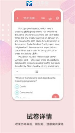 能够帮助用户找到正确学习英语的方法,涵盖高考英语科目的所有知识内容和高考重点,用户可以根据自身的学习情况进行学习,还有海量专题练习题目和模拟题库,每一道题目都有详细的讲解分析 ,帮助用户找到在学习过程中的不足之处,同时查缺补漏,解决自己的知识薄弱的地方,还有历年高考真题供用户练习,帮助用户提高成绩。