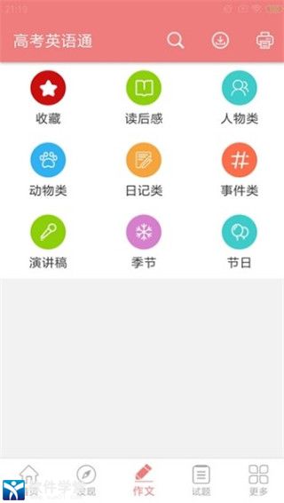 1、作文模块,诸多的不同类别的作文知识任你观看欣赏,便于强化写作能力。