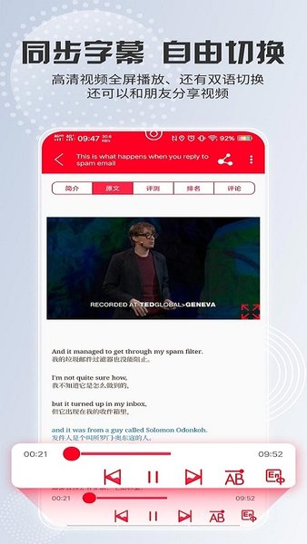 通过这款软件,我们可以学习更多英语,还有不同的教学方式!这ted英语演讲app是一个专注于演讲的英语学习app让你可以在看电影的过程中学习到纯正的美是发音和演讲技巧,提供离线下载的功能,喜欢这款软件的话,就快来本站进行下载吧。