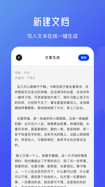 1、软件文章生成器,非常的便捷一键就能快速帮用户生成,用户可以复制。