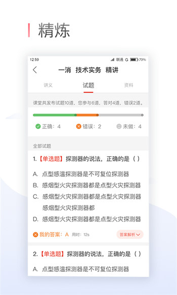 4,还附有随堂考试,测试结束后,系统会自动的给做题结果分析出来,以及提示出用户的易错点。