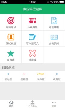 除了完整的事业单位考试题库和丰富的实践和考题模式外,还有事业单位考试查询入口和事业单位考试大纲!