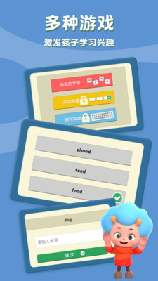 新奇的教学方法给用户带来不一样的学习体验,让孩子更快速的掌握单词;