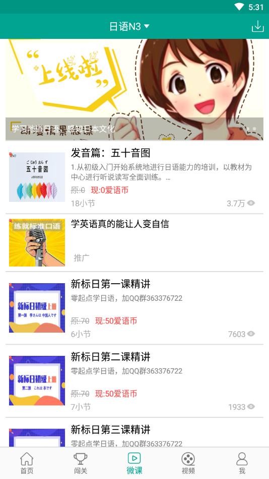 名师微课,从五十音图至高级日语,从词汇到语法应有尽有;