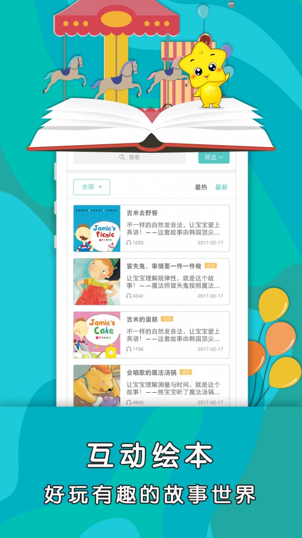 2、软件内的绘本都具有着教育互动能力的,可以让孩子们在互动之中学习,通过各种叙事的图画以及文字和画面的结合,让孩子们能够积极的参与其中去。