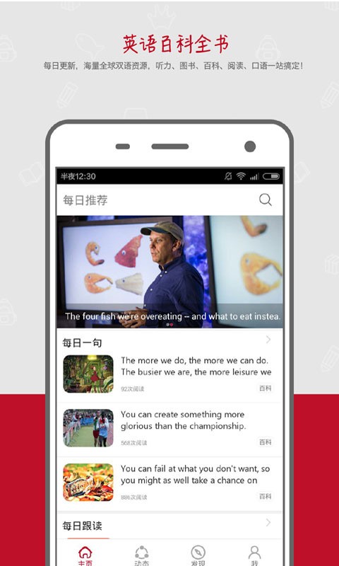 2、软件之中有着实用的阅读功能,还提供了多部免费的英语的图书,让用户们在阅读的过程之中学习英语,其中还加入了学习的社区功能,让用户之间能够交流学习的心得。