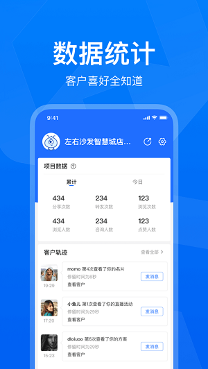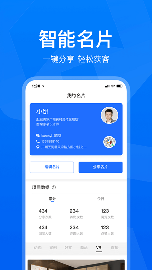 一键分享自己的名片,可以轻松获得各个渠道的客源信息。