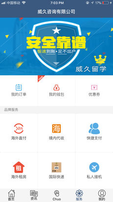 威久留学是由上海逸家人信息技术有限公司为威久留学咨询咨询有限公司定制的定制版APP,旨在提供贯穿留学前后的各类型服务。