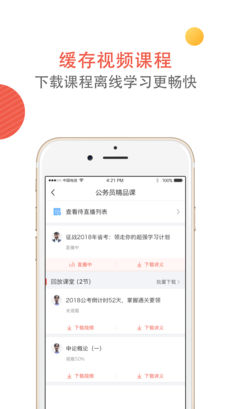 4、公考名师在线视频直播,师生互动,支持离线下载,真正实现公考随身学,口袋公考随身听。