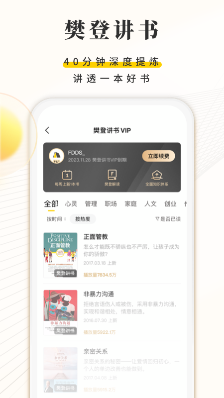 活到老学到老,世界上的知识是学不完的,世界上的书籍人着辈子也是看不完的,阅读是一种良好的学习习惯,让阅读变成一件快乐的事。《樊登读书安卓旧版版》一款专业的音频阅读软件,它提供了大量的图书资源,包括视频、音频、图形等,更多的专家和名师指导阅读,提供最新的阅读见解,推荐优质书籍,帮助你养成良好的阅读习惯,是你掌上阅读的神器,那还等什么,感兴趣的下载去体验吧。