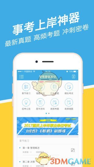 重庆事业单位考试上岸神器!专注本土事业单位考试的移动宝典和备考顾问!重庆事考帮是专为事业单位考试考生设计的的实现事业单位考试练习和模拟考试的手机端APP软件。重庆事考帮app主要是为需要或者想要考事业单位考试的用户提供服务的,主要是提供全真题库在线练习,试题解析,错题巩固,并且还提供最新的事业单位招考资讯信息。