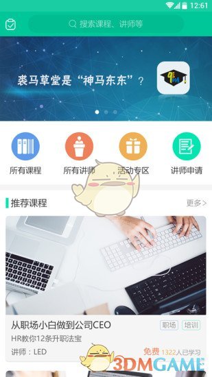 裘马草堂是一家致力于为企业、员工、讲师创造价值的学习平台,努力打造行业知识的储备、流转、增值“银行”。裘马草堂app为企业打造一个员工培训平台,方便用户在这里轻松学习,提升自身的知识储备,增加自身职业竞争力。